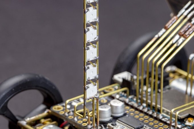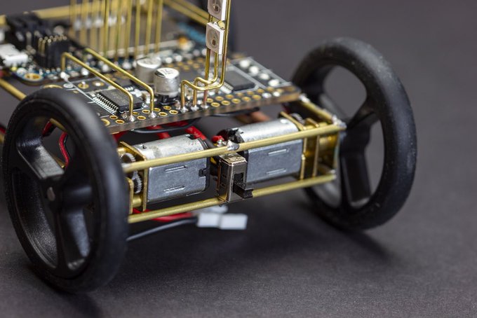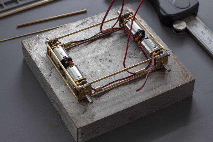 Some close ups. The chassis is made out of 1.5mm brass tubing. Soldering this together while keeping the chassis squared was the most challenging part of this build. I was working with a standard 50W soldering iron. Might need to invest in a higher wattage iron in the future.