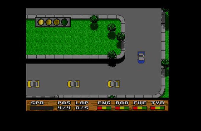 I did enjoy playing this. It was two player as well I think -- or was that Super Cars 2? Still doesn't come close to Super Sprint in this genre for me, though! I spent so many hours playing Super Sprint on the ST in two player mode...