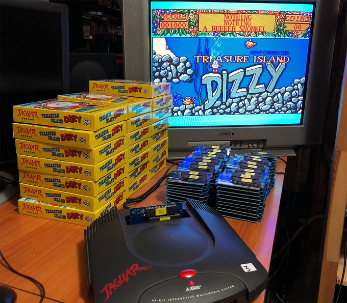 Working hard on getting copies of Treasure Island Dizzy and Defender of the Crown for the #AtariJaguar built so we can ship them out next week! #Dizzy#OliverTwins#Cinemaware#Atari#ClassicGaming#RetroGaming