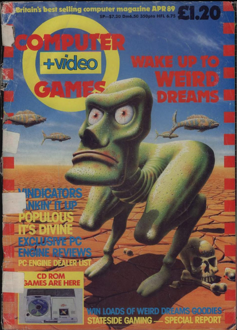 30 years ago, Weird Dreams was on the cover of CVG. The mag featured in-depth coverage of the PC Engine CD-ROM, as well as reviews of PCE Space Harrier (89%), Dragon Spirit (94%), and Vigilante (80%). Amiga Populous also reviewed very well, scoring an impressive 96%.